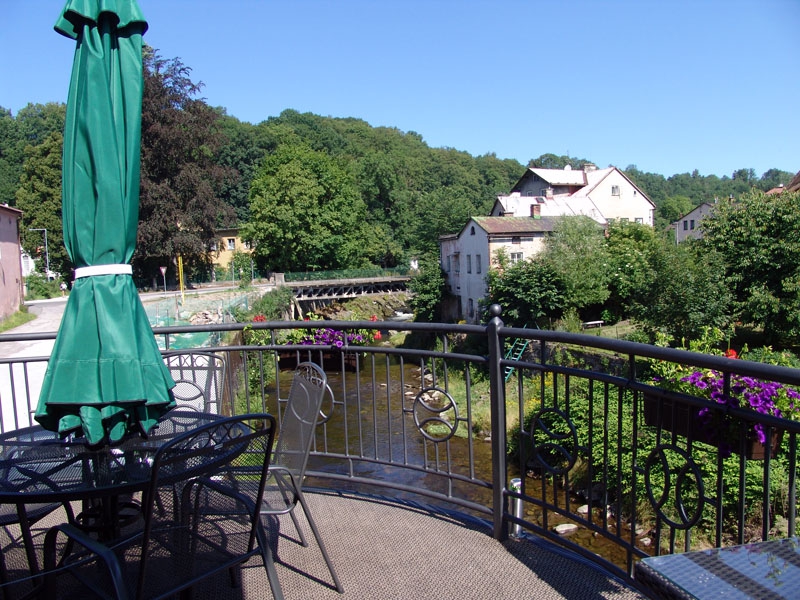 Die Lounge mit Terrasse ist während der heißen Sommermonate oder bei günstigem Wetter geöffnet. Es befindet sich im ersten Stock des Hotels und ist direkt vom Parkplatz oder mit dem Aufzug erreichbar, nachdem Sie durch das Hotel gelaufen sind.